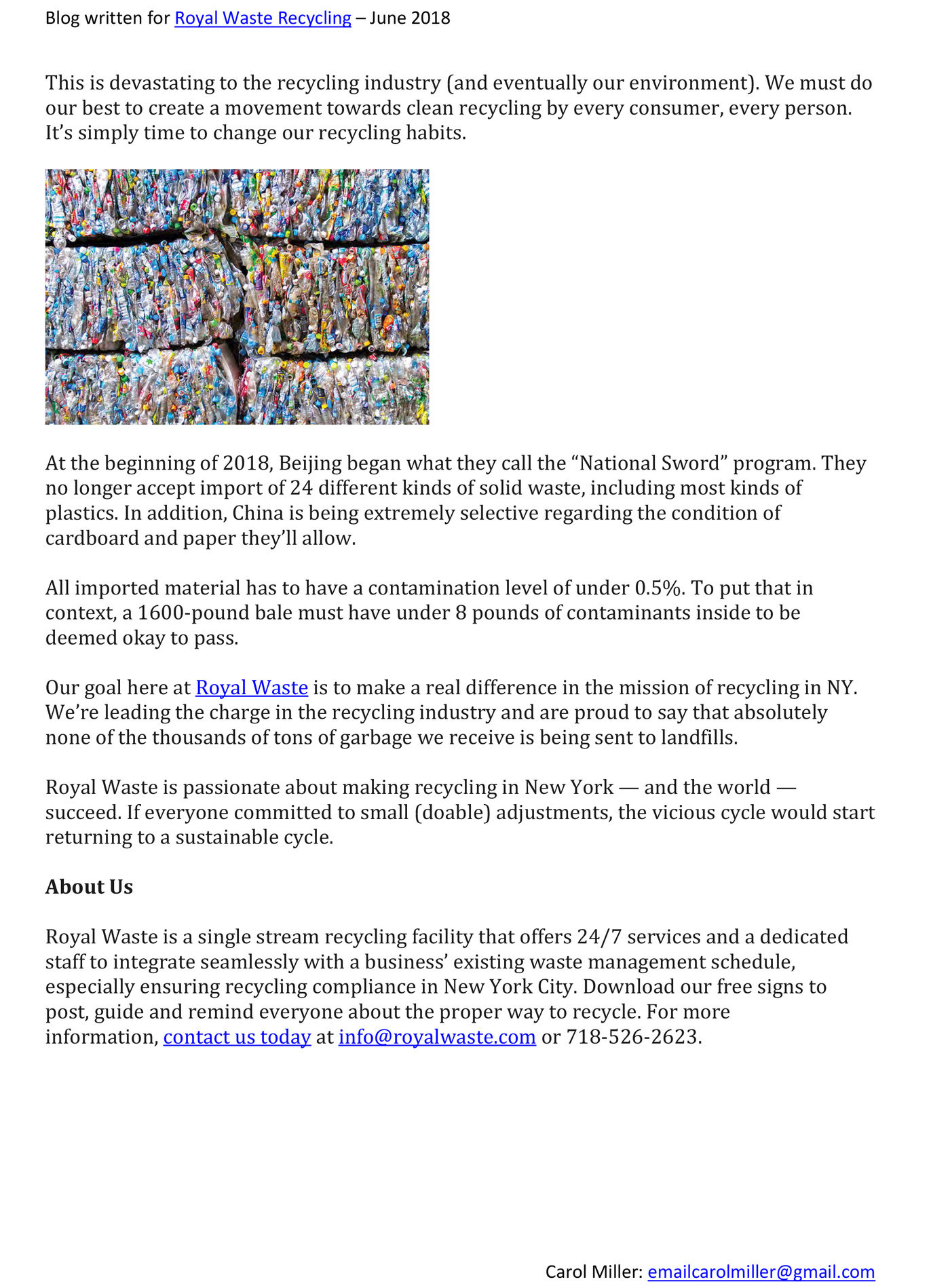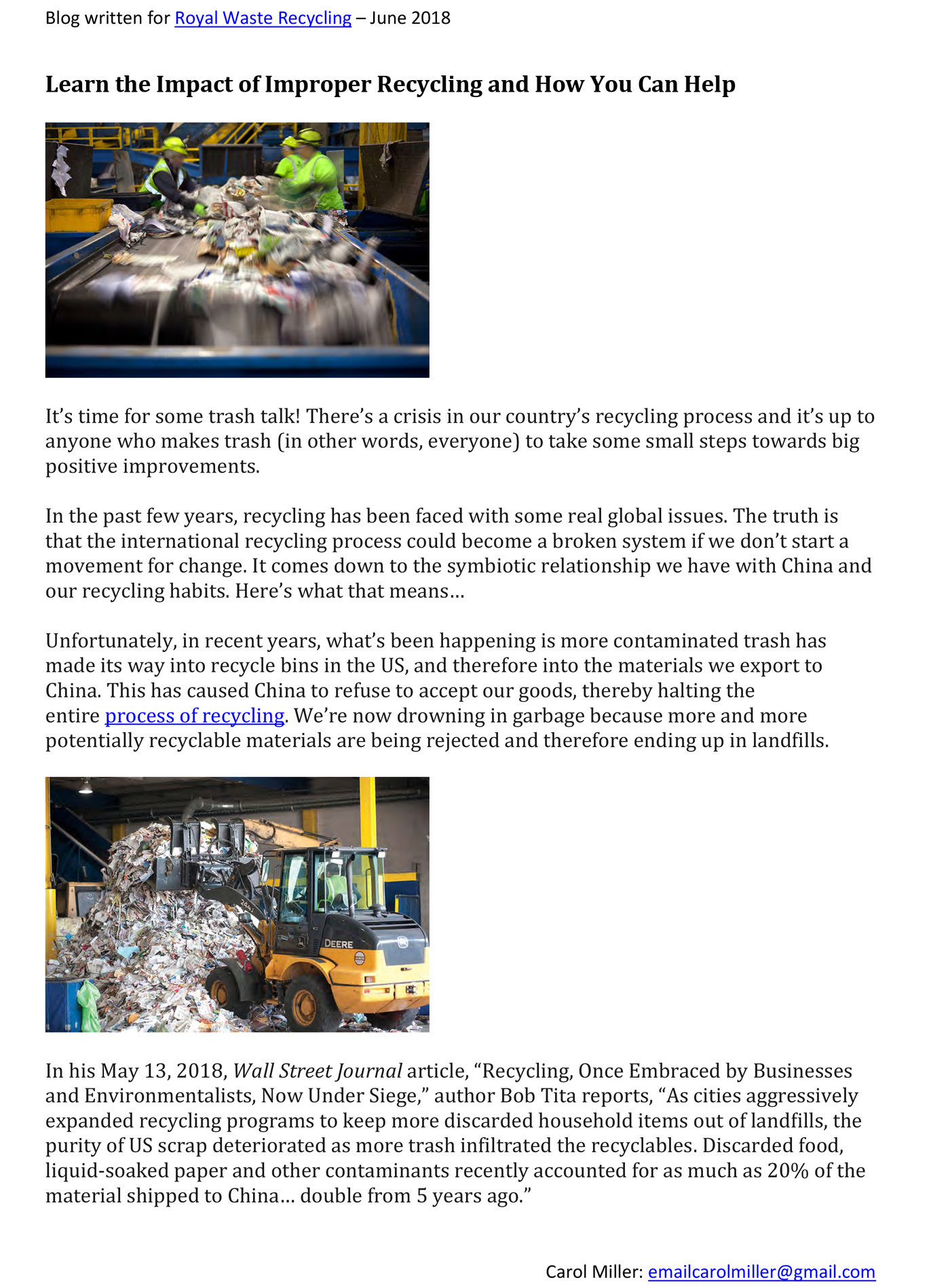 This is a blog I wrote entitled, "Learn the Impact of Improper Recycling and How You Can Help"
